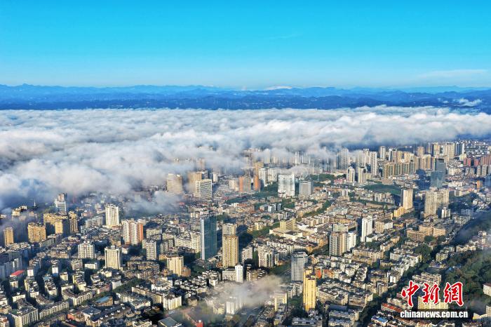 湖北宜昌:雾海“锁”青山 楼宇“浮”云端